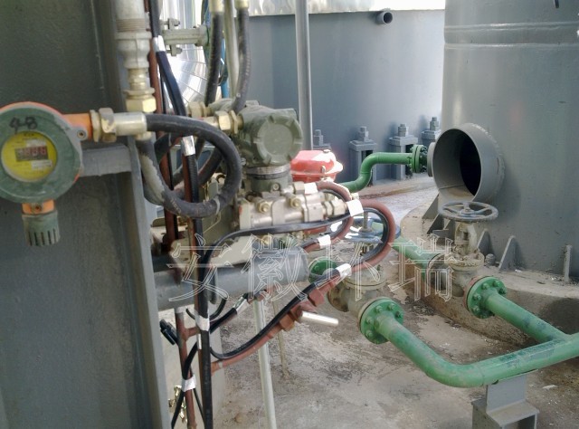 壓力變送器液位計(jì)常應(yīng)氣候溫度過低,造成堵塞現(xiàn)象,需要電伴熱防凍,渝豐化工要求其冬季維持溫度為5--10℃,并且要求電伴熱帶具有防爆防腐功能。安徽環(huán)瑞提供ZRDHR-PF46滿足客戶對(duì)使用場合及維持溫度要求,其最高表面溫度為70℃,耐溫可達(dá)200℃。可保證維持溫度的情況下,不會(huì)出現(xiàn)溫度過高的情況,更加經(jīng)濟(jì)安全,而針對(duì)現(xiàn)場細(xì)長狹窄的地方自限溫電熱帶可實(shí)現(xiàn)交叉纏繞,解決局部伴熱的問題。以下為現(xiàn)場施工安裝圖: