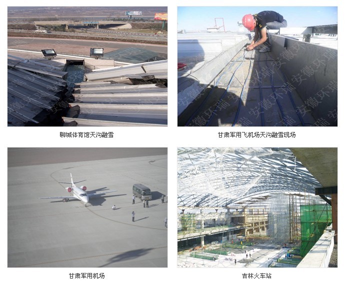 發熱電纜是采用電力轉化為熱能,臥睡在天溝內。一般選用雙導發熱電纜,采取平行鋪設:單位面積鋪裝發熱電纜功率:250~400W/m2(220V),電纜鋪設間距:50mm