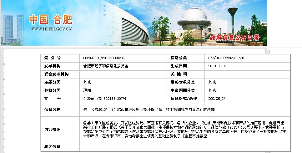 環(huán)瑞作為合肥經(jīng)濟(jì)科學(xué)建設(shè)道路上的重要成員,一直朝著“科技環(huán)瑞,電熱成就世界”的偉大藍(lán)圖邁進(jìn),其具有低電阻過渡層的自限溫電伴熱產(chǎn)品先后獲得省,市關(guān)于科技成果的榮譽(yù)有:合肥市科學(xué)技術(shù)獎(jiǎng),安徽省高新技術(shù)產(chǎn)品,合肥重點(diǎn)名牌產(chǎn)品。國(guó)家7項(xiàng)專利證書。其環(huán)保節(jié)能的特點(diǎn)已經(jīng)獲得政府、行業(yè)協(xié)會(huì),及市場(chǎng)的認(rèn)可。目前,環(huán)瑞公司已通過了合肥市推薦應(yīng)用節(jié)能環(huán)保產(chǎn)品、技術(shù)目錄的公示,獲得了環(huán)保節(jié)能產(chǎn)品稱號(hào),以下為合肥經(jīng)濟(jì)和貿(mào)易信息化委員會(huì)網(wǎng)站的公示內(nèi)容: