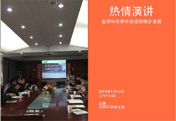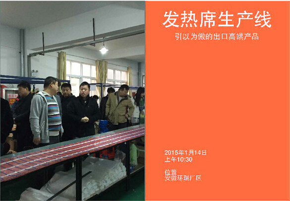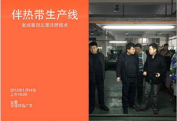 2015114日新年伊始,環瑞迎來了新疆烏蘇市相關領導蒞臨考察,烏蘇市相關領導在環瑞董事長計成志陪同下參觀了環瑞電伴熱帶、發熱地席和環瑞現代化展廳,并在環瑞會議時聽取環瑞員工對環瑞未來發展的相關介紹。