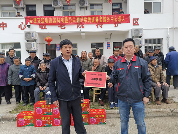 在敬老院的捐贈儀式現(xiàn)場,梁園鎮(zhèn)敬老院負(fù)責(zé)人對安徽環(huán)瑞電熱器材有限公司工作人員的善德善行表示了敬意和感謝,并接受了安徽環(huán)瑞公司捐贈的物資。