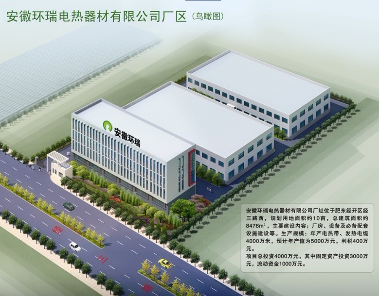 2012年6月05日肥東新城開發(fā)區(qū)領導及安徽環(huán)瑞電熱器材有限公司全體員工聚集在肥東開發(fā)區(qū),進行新廠房開工剪彩儀式,獲得圓滿成功。該廠總建筑面積約8476平方米,主要建設內容:廠房、設備配套設施建設等,項目總投資4000萬余元。