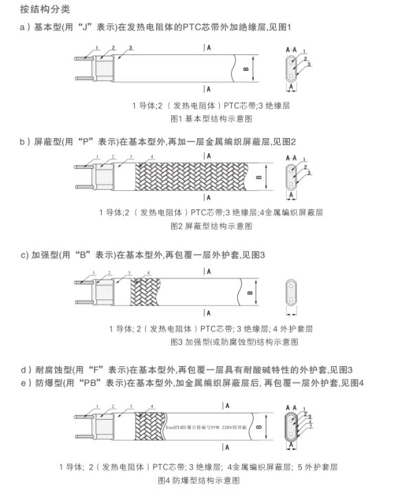自控溫電伴熱帶結構型號分類